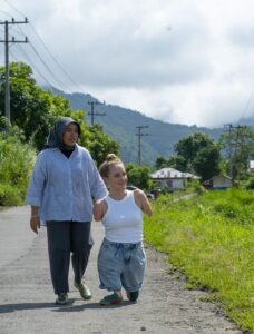 ‘Ja, dat is zeker een van de redenen. Je kan je terugtrekken en thuis gaan zitten of er wat van proberen te maken. Het Liliane Fonds helpt jaarlijks meer dan vijftigduizend kinderen met een handicap in de armste landen van de wereld. Ik was met hen in Indonesië en ontmoette daar een moeder die een kindje had met een hersenbeschadiging. Zo’n schatje. Ze kon niet praten maar had heel mooie grote ogen en probeerde echt met iedereen contact te maken. De moeder had bepaalde healing-rituelen niet gedaan tijdens de zwangerschap en werd daarom door de mensen in haar dorp als schuldig gezien. Dat dacht ze zelf ook, dat het aan haar lag. Chiara van het fonds die vroeg haar gewoon, maar hoe gaat het nou met jou? Ze brak echt in duizend stukjes. Volgens mij had nog nooit iemand dat aan haar gevraagd. Het Liliane Fonds zorgt ervoor dat zo’n kindje en ook de moeder een echte kans krijgen. Dat gaat veel verder dan verzorging, genezing, prothesen en dat soort dingen. Ze zorgen er ook voor dat die kinderen mee gaan kunnen in de gemeenschap, geaccepteerd worden, naar school kunnen, iets leren, gewoon gaan meedraaien. Zóóó waardevol. Als ik daar iets aan kan bijdragen, al is het maar mentaal, dan is dat ook voor mij een soort geschenk. En ik ben een goede match natuurlijk. Wat dat betreft is het echt een no-brainer. Als ze mij zien… dat geeft hoop; wat er ook gebeurt, hoe je er ook voorstaat, je hebt de keus om er iets mee te doen.’